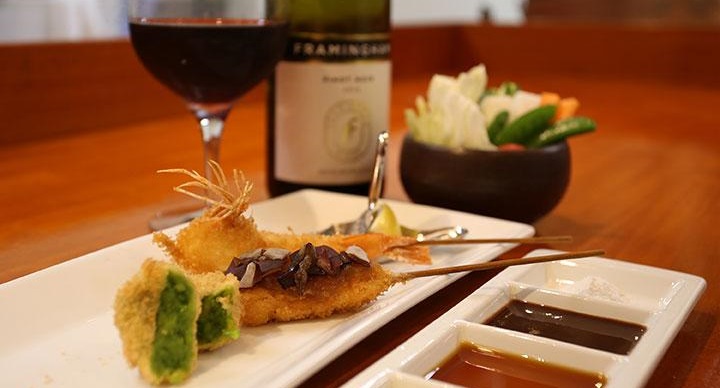 島の食材を活かした串揚げと、島の焼酎・ワイン・日本酒など豊富なドリンクが楽しめるお店です。島の素材を新しい形で味わいたい方におすすめ。事前に予約をして訪れることを推奨します。お食事代のお支払いに、『奄美群島eしまギフト』をご利用いただけます。